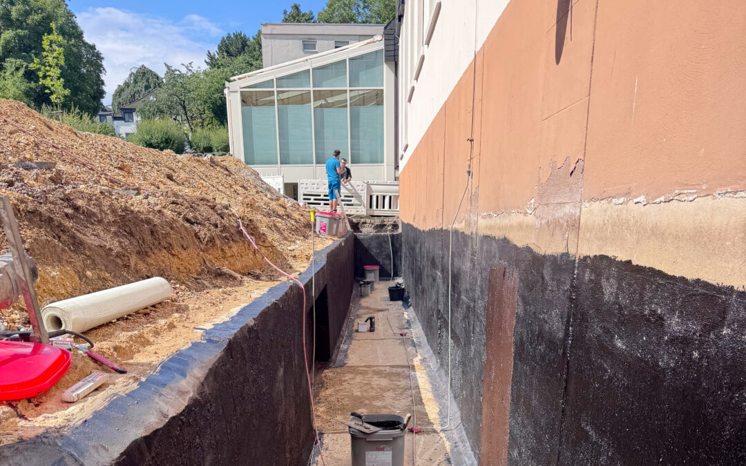 Für ein Klinikgebäude haben wir die Kelleraußenwände fachgerecht abgedichtet, um langfristigen Schutz vor Feuchtigkeit zu gewährleisten.