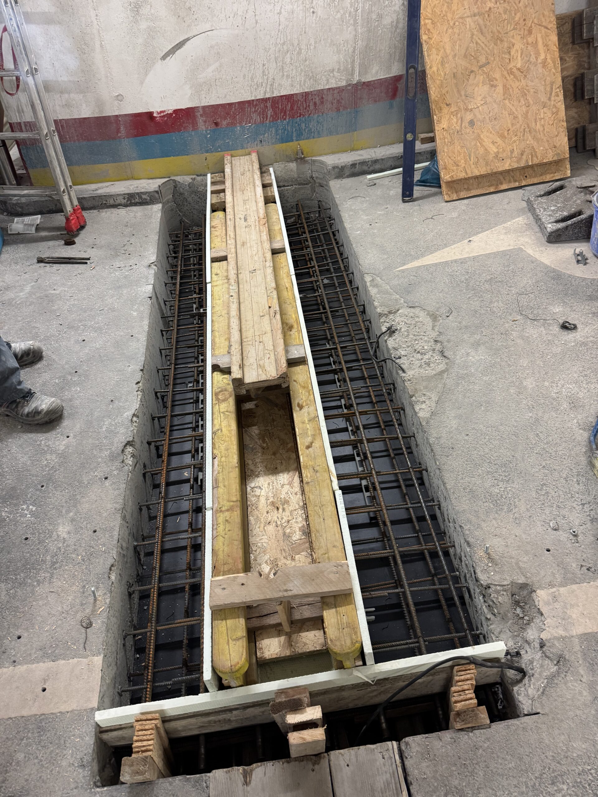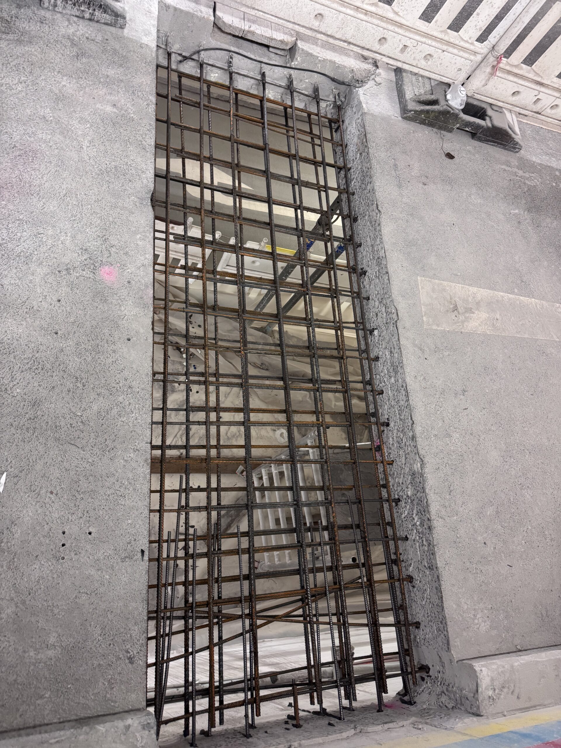 Die beschädigte Tiefgaragenzufahrt wurde abschnittsweise ausgeschnitten. Im Anschluss erfolgte das Einkleben der neuen Bewehrung mit Hilti-Hit und das Ausbetonieren. Danach wurde der Rinnenkörper mit Flüssigkunststoff abgedichtet und die neue Rinne fachgerecht eingebaut.
